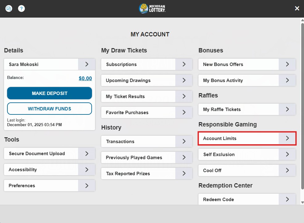 - Sign In from the menu. The menu is accessible by selecting the “≡” icon in the upper-left portion of your screen. Select “Sign in” from the mobile menu and enter your Michigan Lottery account credentials.
